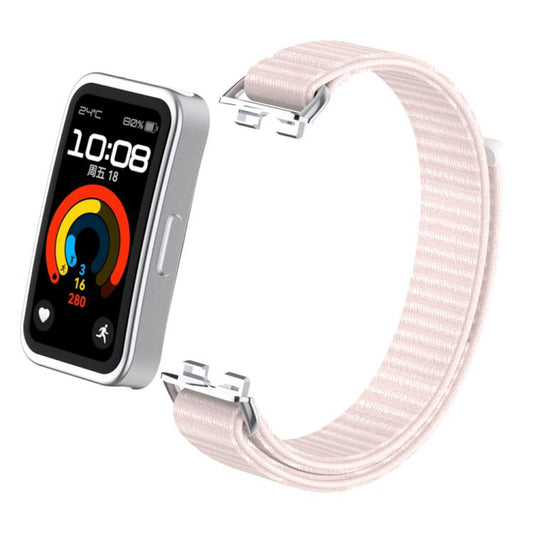 For Huawei Band 10 / 9 / 8 Metal Connector Nylon Loop Hook and Loop Fastener Watch Band(Pearl Pink)