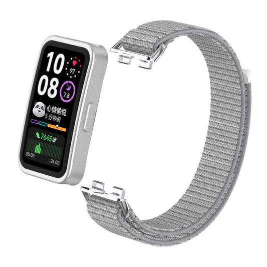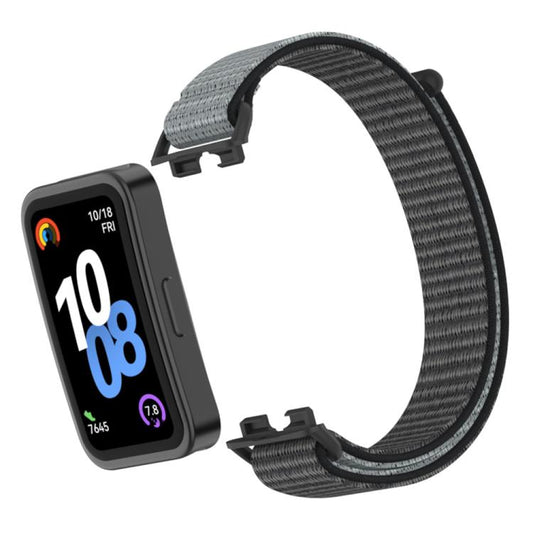 For Huawei Band 10 / 9 / 8 Plastic Connector Nylon Loop Hook and Loop Fastener Watch Band(Grey)