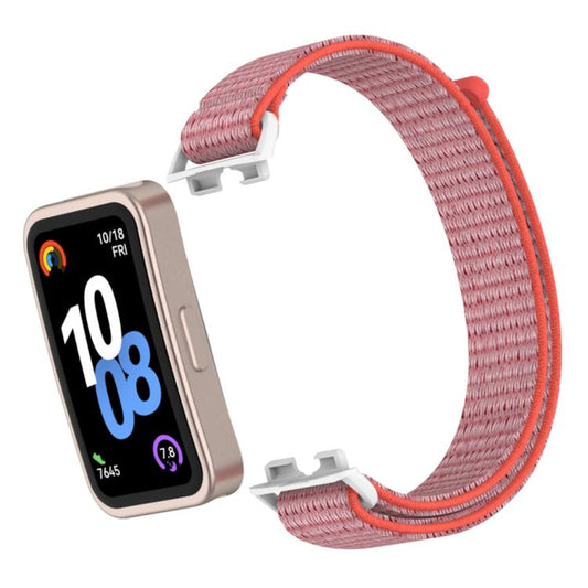 For Huawei Band 10 / 9 / 8 Plastic Connector Nylon Loop Hook and Loop Fastener Watch Band(Fresh Pink)
