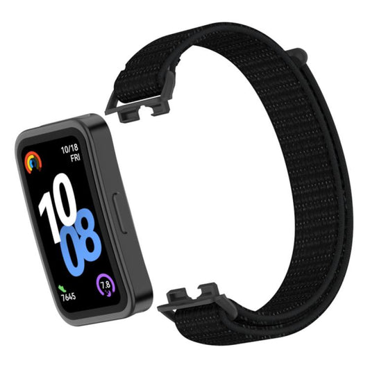 For Huawei Band 10 / 9 / 8 Plastic Connector Nylon Loop Hook and Loop Fastener Watch Band(Black)