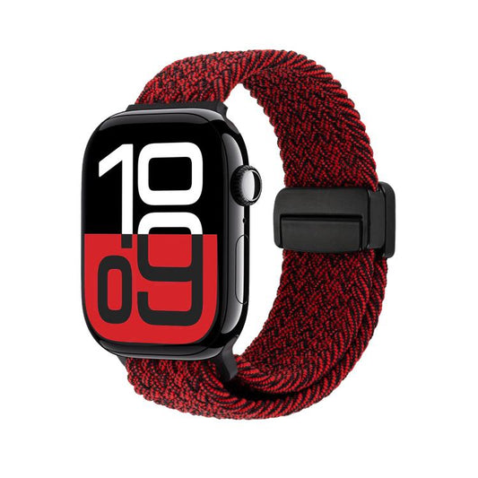 For Apple Watch 42mm / 41mm / 40mm / 38mm Magnetic Buckle Loop Woven Watch Band(Black Silt Red)