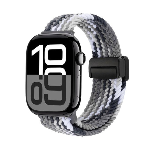 For Apple Watch 42mm / 41mm / 40mm / 38mm Magnetic Buckle Loop Woven Watch Band(Dazzling Black)