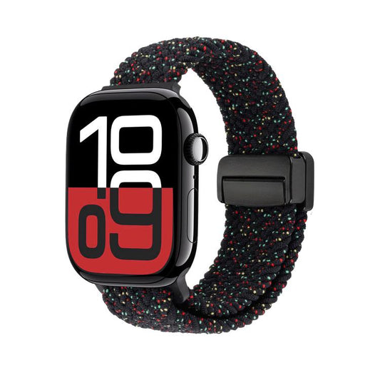 For Apple Watch 42mm / 41mm / 40mm / 38mm Magnetic Buckle Loop Woven Watch Band(Starlight Black)