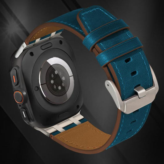 For Samsung Galaxy Watch Ultra 47mm / Ultra 2025 Crazy Horse Leather Watch Band(Dark Blue+Titanium Buckle)