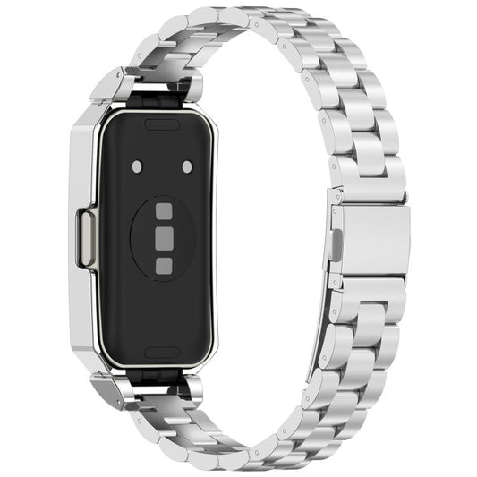 For Huawei Band 10 / 10 NFC / 9 / 9 NFC Watch Frame Integrated Three Beads Stainless Steel Watch Band(Silver)
