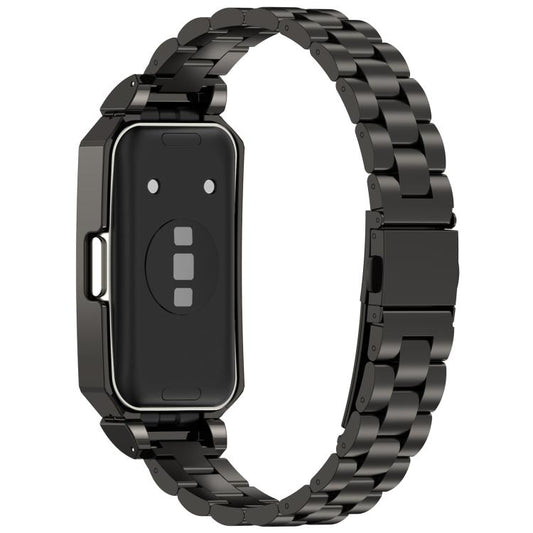 For Huawei Band 10 / 10 NFC / 9 / 9 NFC Watch Frame Integrated Three Beads Stainless Steel Watch Band(Black)