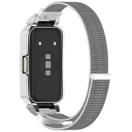 For Huawei Band 10 / 10 NFC / 9 / 9 NFC Watch Frame Integrated Nylon Loop Watch Band(Gray+Black)