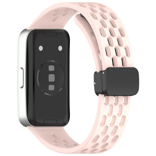 For Huawei Band 10 / 9 / 8 Hole Style Fold Magnetic Buckle Silicone Watch Band(Pink)