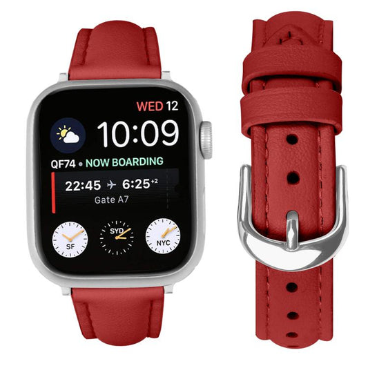 For Apple Watch 46mm / 49mm / 45mm / 44mm Small Waist PU Leather Watch Band(Red)