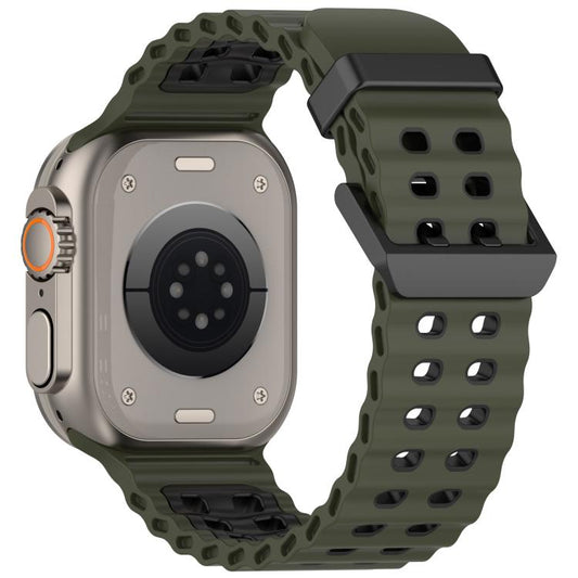 For Apple Watch 46mm / 49mm / 45mm / 44mm Ocean Double-row Hole Two-color Silicone Watch Band(Army Green Black)