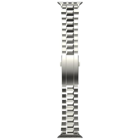 For Apple Watch 46mm / 49mm / 45mm / 44mm xDfind Three Beads Fold Buckle Stainless Steel Watch Band(Silver)