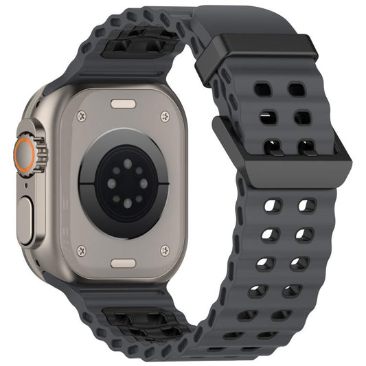 For Apple Watch 46mm / 49mm / 45mm / 44mm Ocean Double-row Hole Two-color Silicone Watch Band(Black Black)