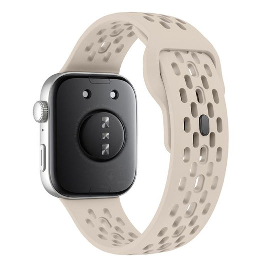For Apple Watch 42mm / 41mm / 40mm / 38mm Plain Solid Color Rose Gold Buckle Silicone Watch Band(White)