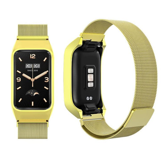 For Xiaomi Mi Band 7 Pro Stainless Steel Frame Integrated Milanese Magnetic Metal Watch Band(Gold)