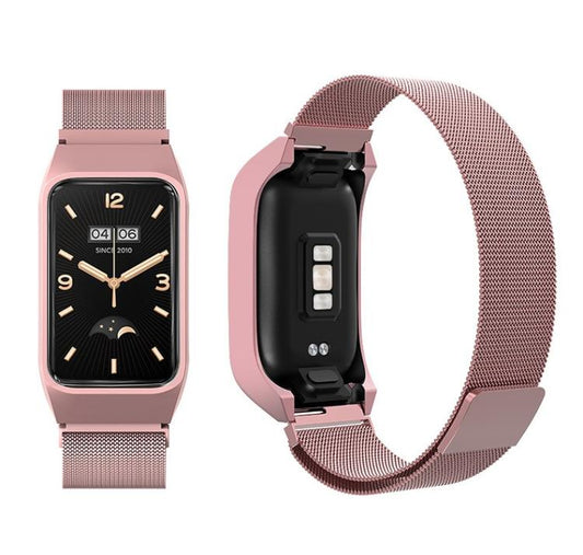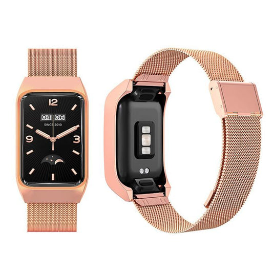 For Xiaomi Mi Band 7 Pro Stainless Steel Frame Integrated Milanese Buckle Metal Watch Band(Rose Gold)