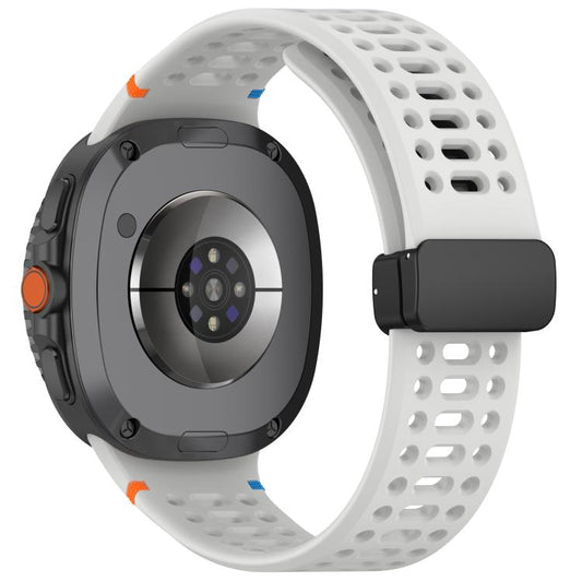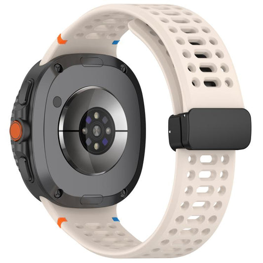 For Samsung Galaxy Watch8 / Watch8 Classic Magnetic Black Buckle Breathable Stitched Silicone Watch Band(Starlight)