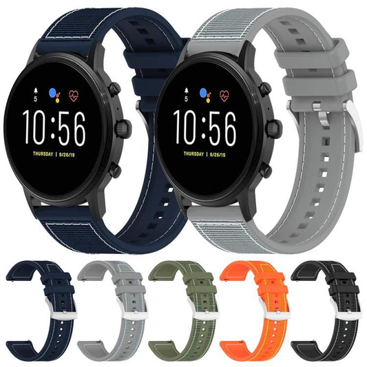 22mm For Fossil Gen 5 Carlyle / Julianna xDfind Hybrid Nylon Braid Silicone Watch Band(Green)