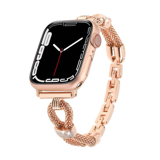 For Apple Watch 42mm / 41mm / 40mm / 38mm Copper Chain Diamonds Metal Watch Band(Rose Gold)