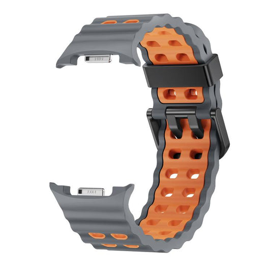 For Samsung Galaxy Watch8 / Watch8 Classic Ocean Style Quick Release Buckle Two Color Silicone Watch Band(Space Grey Orange)