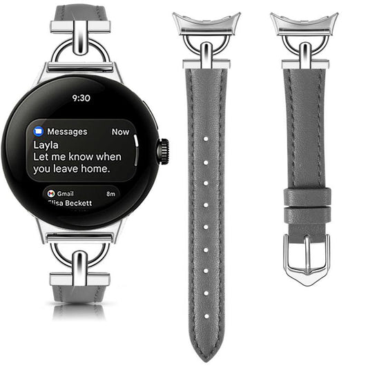 For Google Pixel Watch 1 / 2 / 3 41mm D-shaped Metal Small Waist Leather Watch Band(Grey)