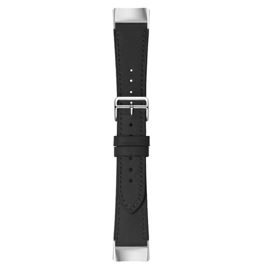 For Fitbit Charge 6 / 5 Cowhide Leather Watch Band(Black Black Line)