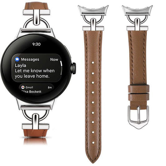 For Google Pixel Watch 1 / 2 / 3 41mm D-shaped Metal Small Waist Leather Watch Band(Brown)