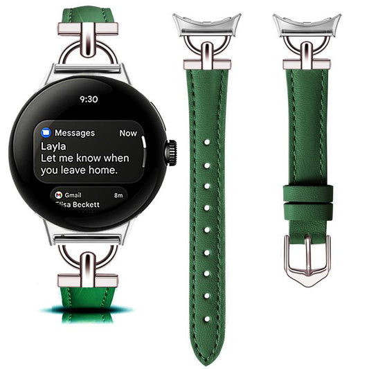 For Google Pixel Watch 1 / 2 / 3 41mm D-shaped Metal Small Waist Leather Watch Band(Green)