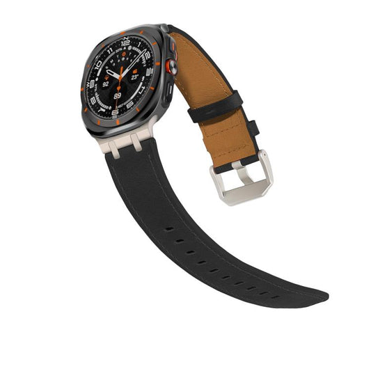 For Samsung Galaxy Watch8 / Watch8 Classic Crazy Horse Leather Watch Band(Black Titanium)