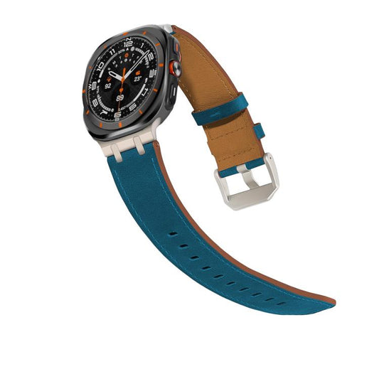 For Samsung Galaxy Watch8 / Watch8 Classic Double Buckle Genuine Leather Watch Band(Blue)