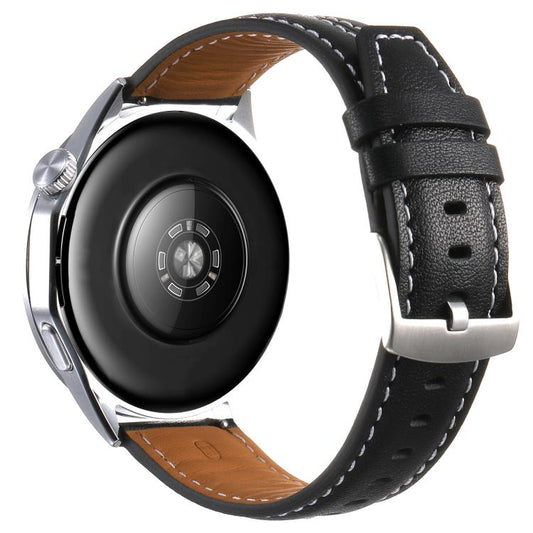 For Huawei Watch GT 6 46mm Silver Buckle Leather Watch Band(Black)