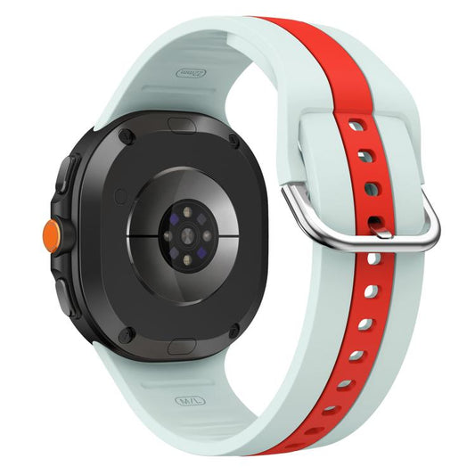 For Samsung Galaxy Watch8 / Watch8 Classic Silver Buckle Vertical Stripe Two Color Silicone Watch Band(Mint Green Red)