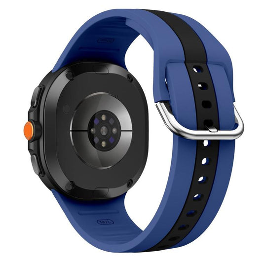 For Samsung Galaxy Watch8 / Watch8 Classic Silver Buckle Vertical Stripe Two Color Silicone Watch Band(Blue Black)