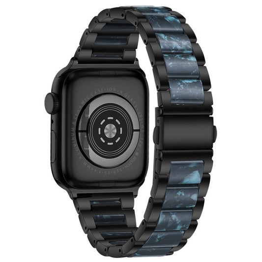 For Apple Watch 42 / 44 / 45 / 46 / 49mm xDfind Three Beads Metal Resin Watch Band(Black Blue)