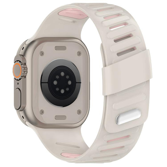 For Apple Watch 46mm / 49mm / 45mm / 44mm Oblique Buckle Breathable Two-Color Silicone Watch Band(Starlight Oxford Pink)
