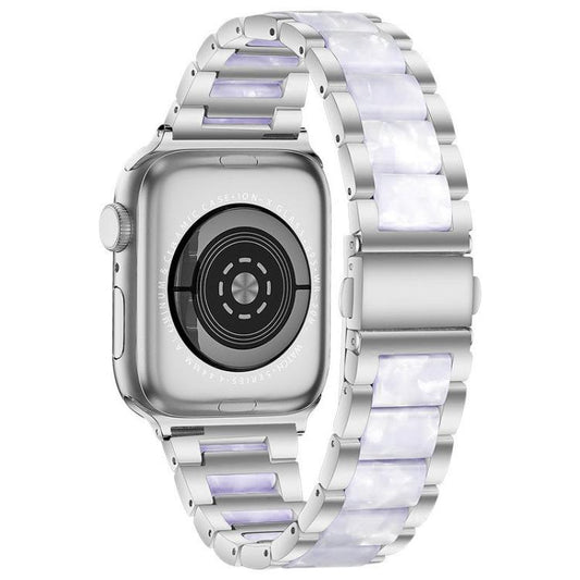 For Apple Watch 42 / 44 / 45 / 46 / 49mm xDfind Three Beads Metal Resin Watch Band(Silver White)
