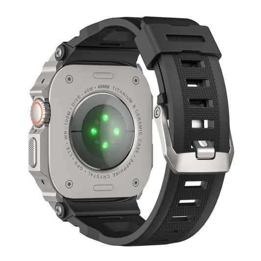 For Apple Watch Ultra 3 / 2 / 1 49mm Vibrant Zinc Alloy Cover Integrated Silicone Watch Band(Titanium Black)