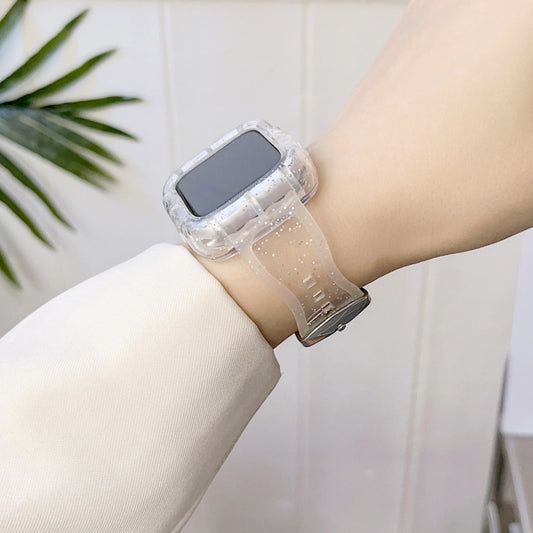 TPU Integrated Case Watch Band For Apple Watch Series 9&8&7 45mm/SE2025&SE 2&6&SE&5&4 44mm / 3&2&1 42mm(Transparent Glitter)