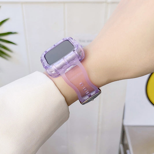 TPU Integrated Case Watch Band For Apple Watch Series 9&8&7 45mm/SE2025&SE 2&6&SE&5&4 44mm / 3&2&1 42mm(Transparent Purple)