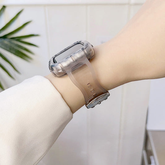 TPU Integrated Case Watch Band For Apple Watch Series 9&8&7 45mm/SE2025&SE 2&6&SE&5&4 44mm / 3&2&1 42mm(Transparent Black)
