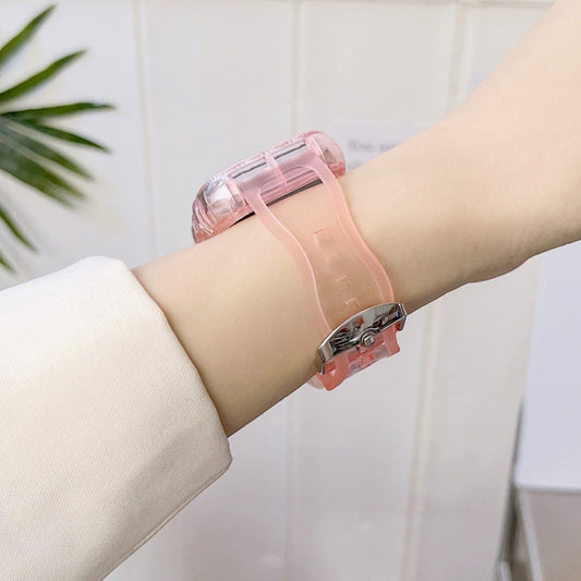 TPU Integrated Case Watch Band For Apple Watch Series 9&8&7 45mm/SE2025&SE 2&6&SE&5&4 44mm / 3&2&1 42mm(Transparent Pink)