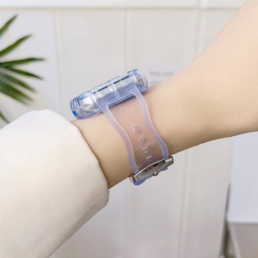 TPU Integrated Case Watch Band For Apple Watch Series 9&8&7 45mm/SE2025&SE 2&6&SE&5&4 44mm / 3&2&1 42mm(Transparent Blue)
