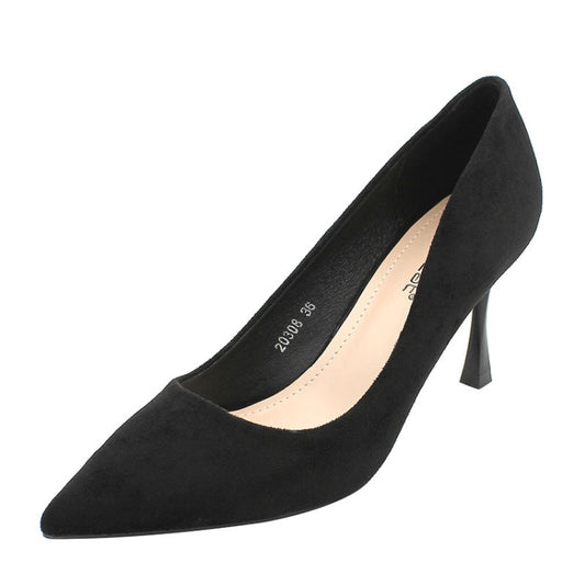 BEI WRH Women Suede High Heels Shallow Mouth Pointed Toe Square Buckle Thin Heel Pumps, Size: 40(Black 6cm)