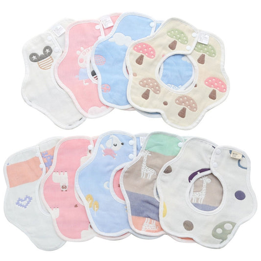 2pcs Dual Sided Newborn Baby Petal Waterproof Bib Six Layers Gauze Cotton Plum Bib, Style: Random Pattern