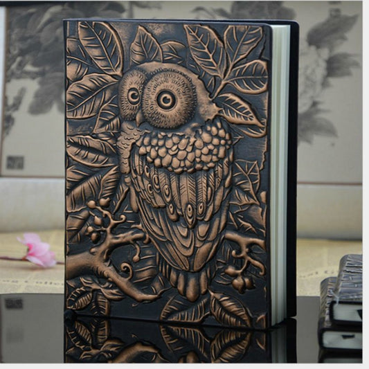01663 Vintage Thick Handmade Leather Carving Owl Sketchbook Journal Cute Notebook(Full Colors)