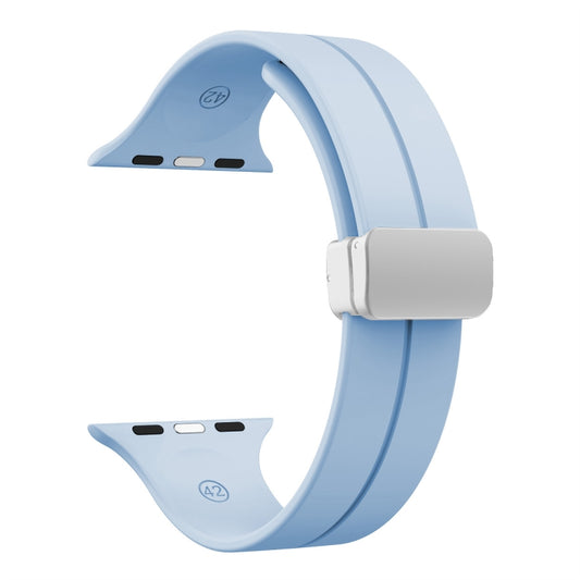 Bracelet de montre en silicone à fermoir magnétique pour Apple Watch Ultra 49 mm et Watch Ultra 2 49 mm / Series 9, 8 et 7 45 mm / SE 3, SE 2, 6, SE, 5 et 4 44 mm / 3, 2 et 1 42 mm (bleu étoile)