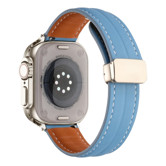 Bracelet de montre en cuir véritable riveté à une rangée pour Apple Watch Ultra 49 mm et Watch Ultra 2 49 mm / Series 9, 8 et 7 45 mm / SE 3, SE 2, 6, SE, 5 et 4 44 mm / 3, 2 et 1 42 mm (bleu clair doré)