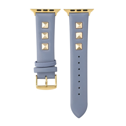 Bracelet de montre en cuir véritable riveté à une rangée pour Apple Watch Series 9&8&7 41 mm / SE 3&SE 2&6&SE&5&4 40 mm / 3&2&1 38 mm (bleu foncé doré)