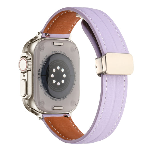 Bracelet de montre en cuir véritable rainuré à boucle déployante pour Apple Watch Series 8 et 7 41 mm / SE 2 et 6 et SE et 5 et 4 40 mm / 3 et 2 et 1 38 mm (violet)
