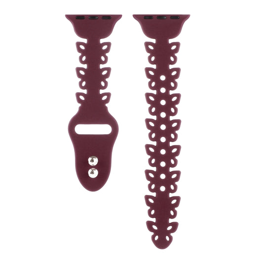 Bracelet de montre en silicone creux papillon pour Apple Watch Series 9&8&7 41 mm / SE 3&SE 2&6&SE&5&4 40 mm / 3&2&1 38 mm (vin rouge)