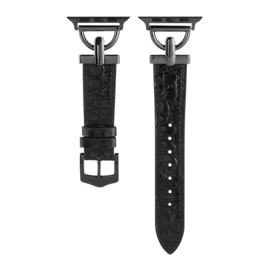 Bracelet de montre en cuir véritable Cocodile à boucle en D pour Apple Watch Series 9&8&7 41 mm / SE 3&SE 2&6&SE&5&4 40 mm / 3&2&1 38 mm (noir)